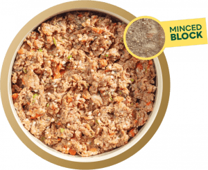 Meaty chicken and tripe raw dog food blocks with salmon. A delicious complete and nutritionally balanced raw meal for dogs. Pack size 300g.