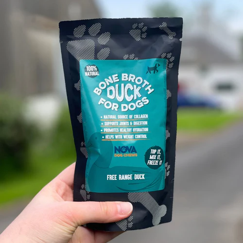Give your dog a daily boost with our 100% organic Duck Bone Broth. This nutrient-packed, natural drink is perfect as a tasty treat or for raising your dog’s fluid intake. Rich in collagen, it supports digestion and joint health, making it ideal for dogs of all ages. Simply pour over meals, use in homemade treats, or freeze into refreshing bites for warm days.
