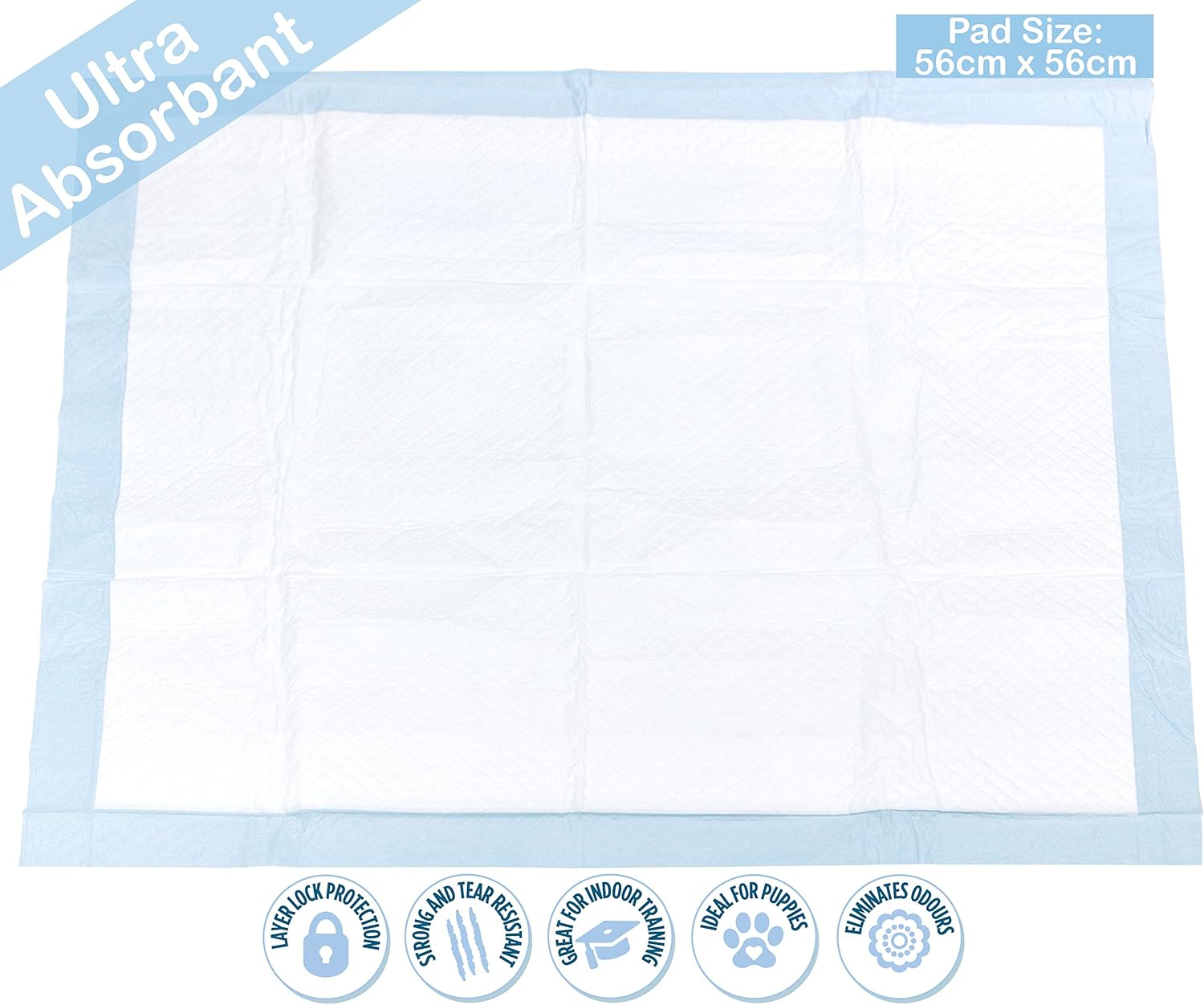 Our pads are perfect for puppies, with a soft outer texture and ultra absorbent inner layer. Great for crates and carriers; and for older dogs who may need these pads to help them too. With the layer lock protection- any bad smells are locked in and kept from escaping, thus eliminating odours.