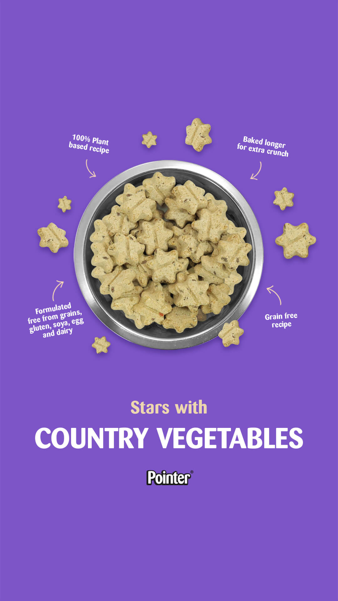 These Grain free dog biscuits are a plant powered, grain free dog treat made with our favourite veggies. Gently oven-baking this recipe on a farm in Lincolnshire, we have combined sweet potato with other natural ingredients like peas, fresh carrot and linseed; creating the perfect treat for all adventures.
