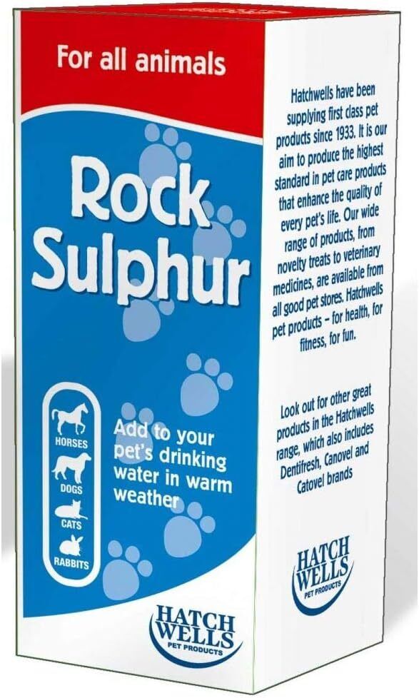 Hatchwells Rock Sulphur is a natural mineral that you add to your pets drinking water as an aid to keep them cool in any hot weather.