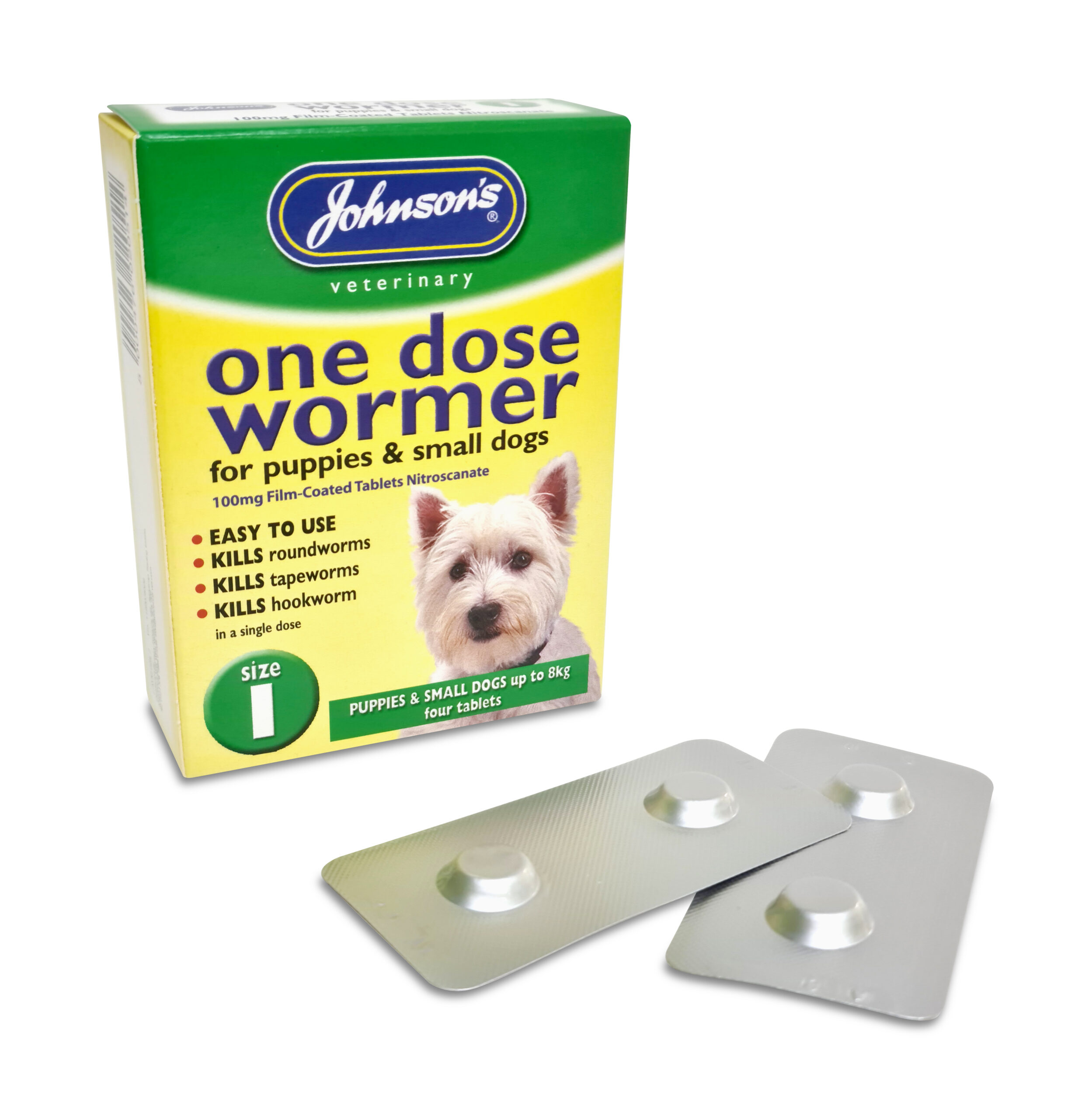 A single dose treatment to kill roundworms, tapeworms and hookworm. Suitable for small breeds of dogs and puppies up to 8kg. 4 x 100mg tablets