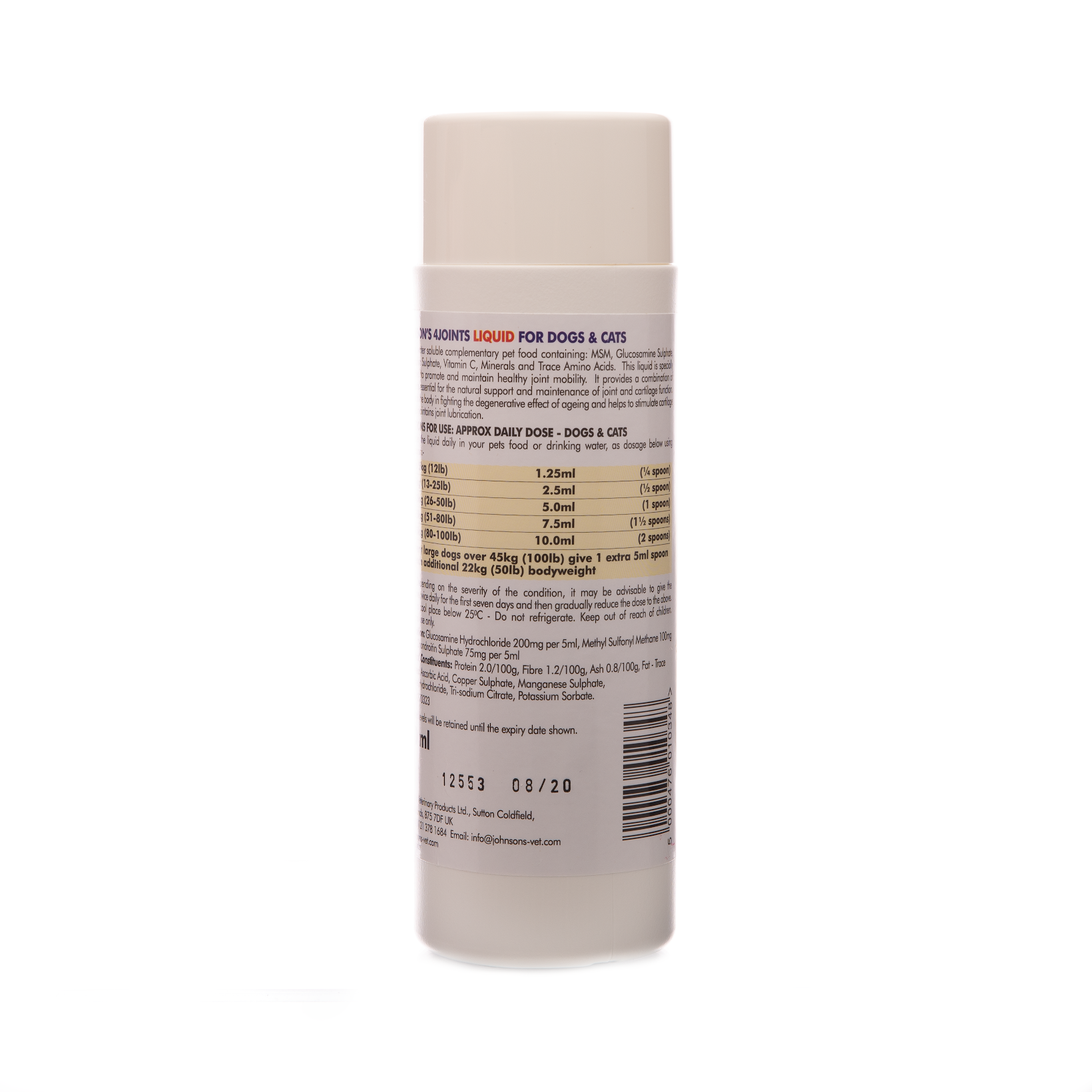 Johnson’s 4Joints Extra Strength Liquid for Cats and Dogs is a specially formulated nutritional supplement, aiding in the maintenance of healthy joints.