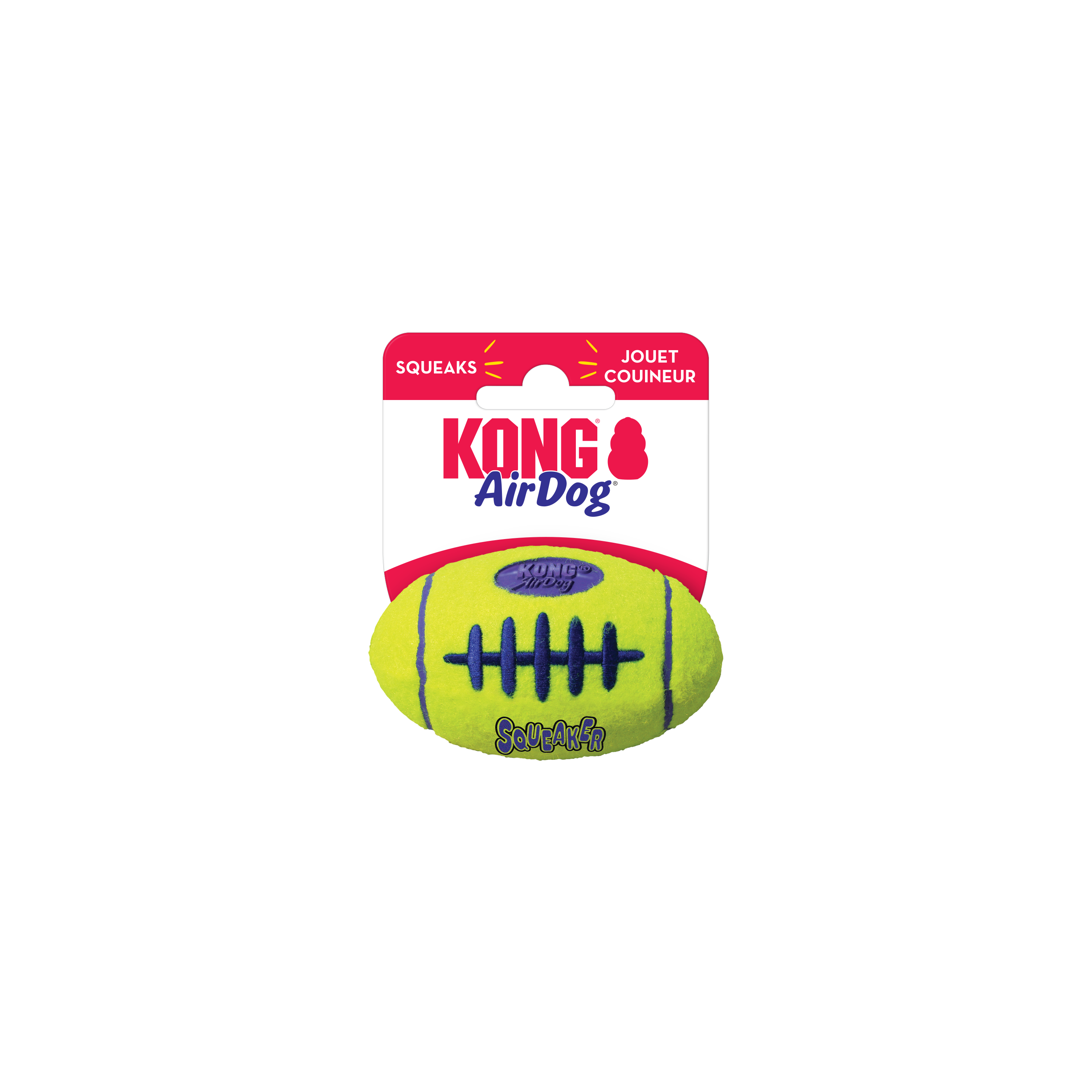 KONG AirDog® Squeaker Football combines two classic dog toys -the tennis ball and the squeaker – to create the perfect fetch toy. The non-abrasive, high-quality material will not wear down dogs’ teeth. Find your dog’s favorite AirDog® shape and let the games begin.