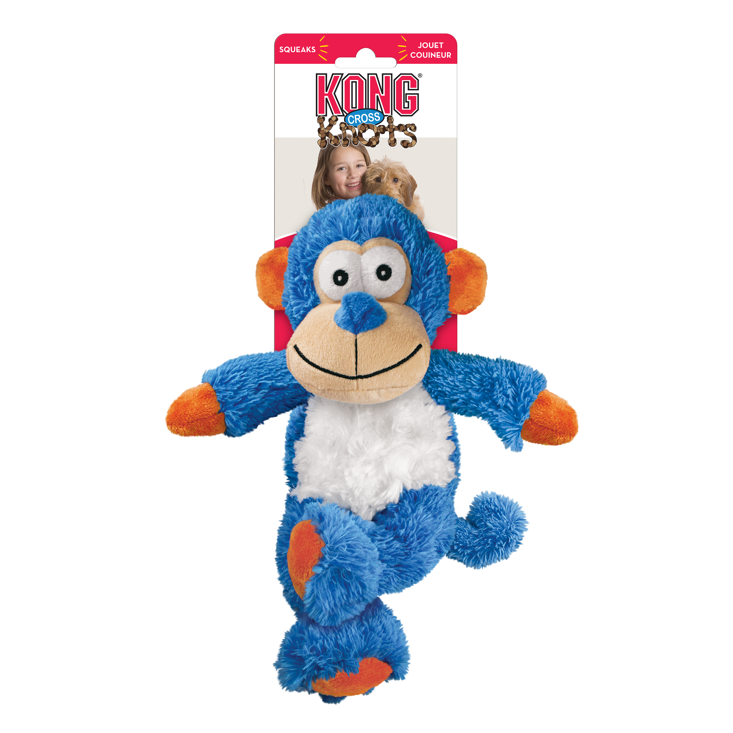 KONG Cross Knots are the classiest critters in the Knots family. With fun details like crossed legs and animated faces, it’s easy to forget how tough these toys are. The internal knotted rope and squeaker satisfies natural instincts and each toy contains less stuffing for less mess. Available in five lovable characters and two sizes, KONG Cross Knots is a great addition to any dog’s toy box.