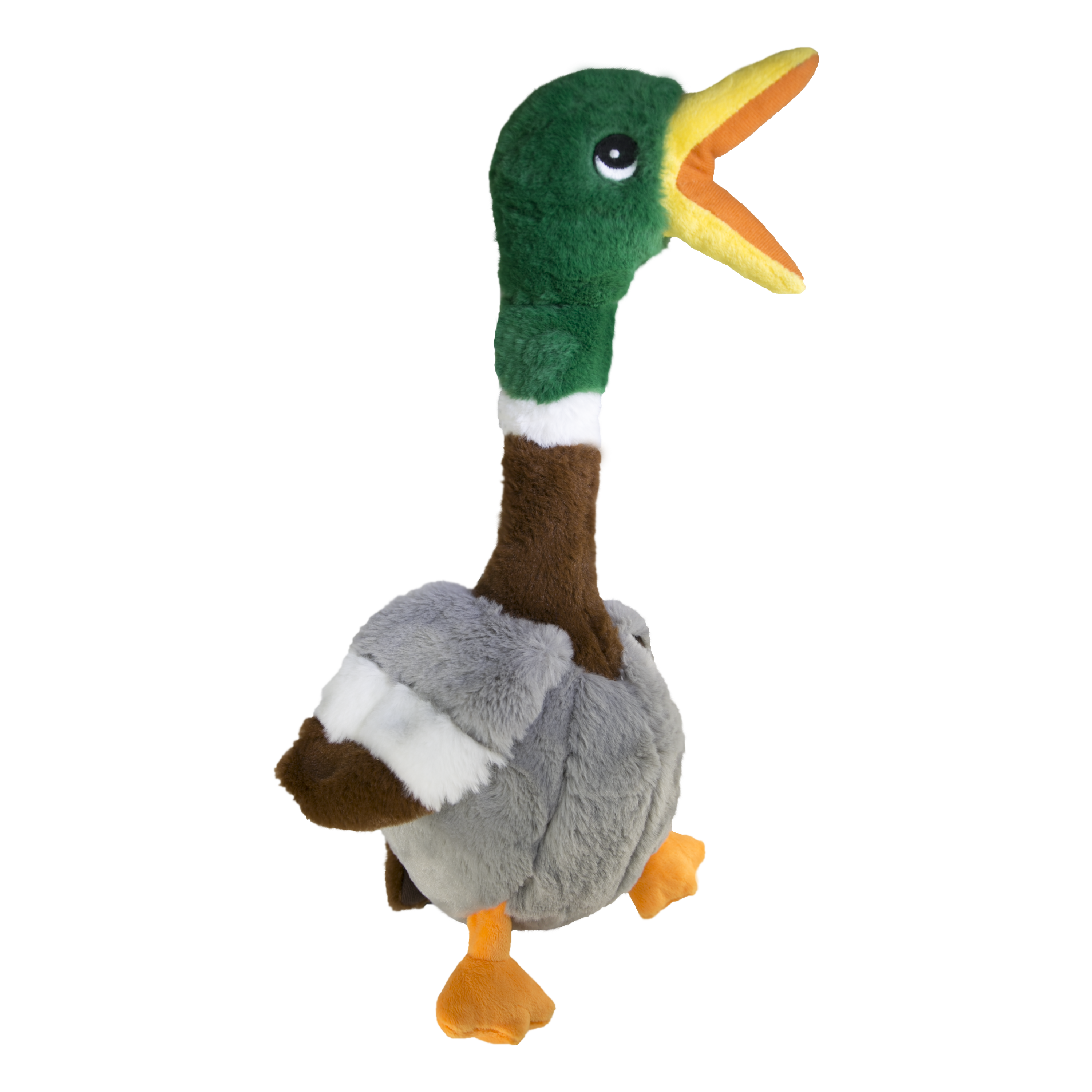 KONG Shakers Honkers Duck lets the fun fly with an internal neck which features a texture that satisfies a dogs’ natural chewing instincts while the long floppy legs spark shaking and tugging play sessions. KONG Shakers Honkers low tone squawk and the reinforced plush design keeps dogs tickled pink and playing longer.