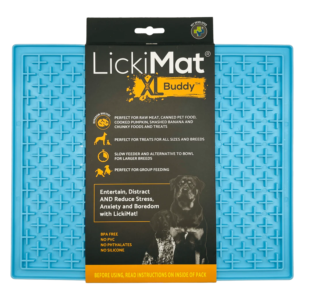 Our LickiMat range is amazing!!! The LickiMat Buddy is best for pushing wet treats or food down into like peanut butter or smashed banana, wet food, raw good, yoghurt, the list is endless! Giving your dog a LickiMat will keep them busy and entertained for ages as well as helping to clean their tongue and relieve boredom.