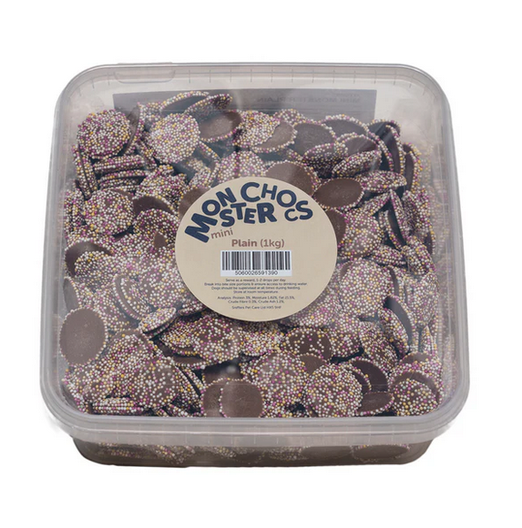 Monster Chocs Mini Plain – Dog-friendly chocolate. Plain Mini Chocolate Discs with Candy Topping- The perfect treat that all dogs love.