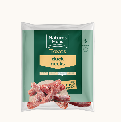 Duck necks for dogs are firm, succulent, highly nutritious and provide multiple textures in one for your dog’s chewing pleasure. Suitable for dogs established on a raw diet over 8 months old. Pack size 6 x Duck Necks.