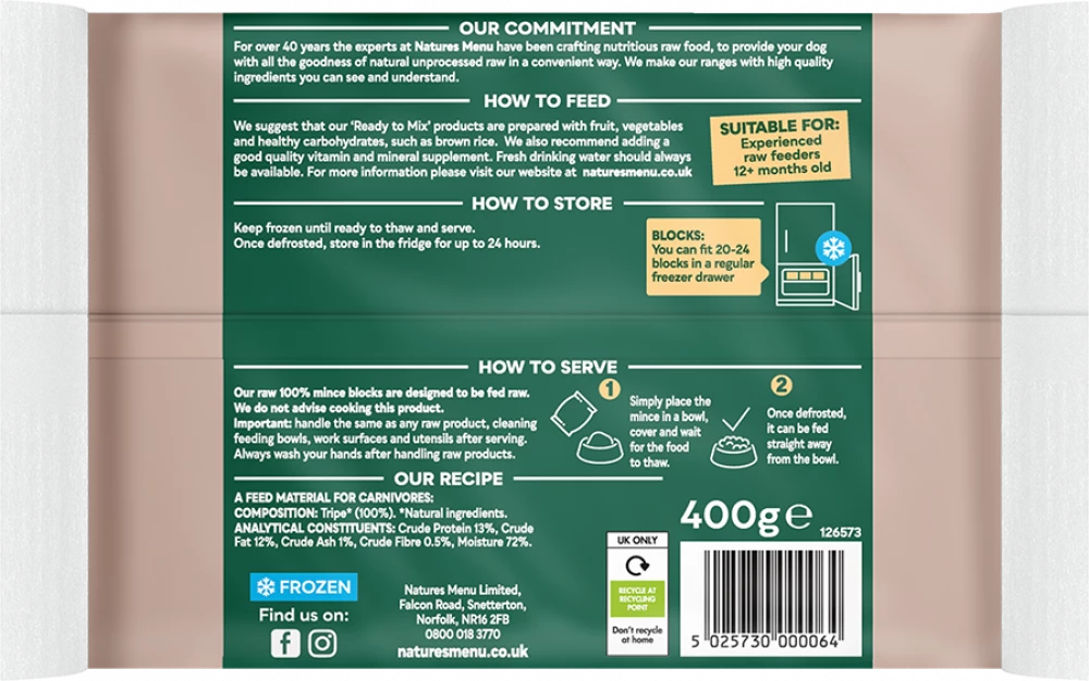 Natures Menu Raw Tripe Block For Adult Dogs 12 X 400GM