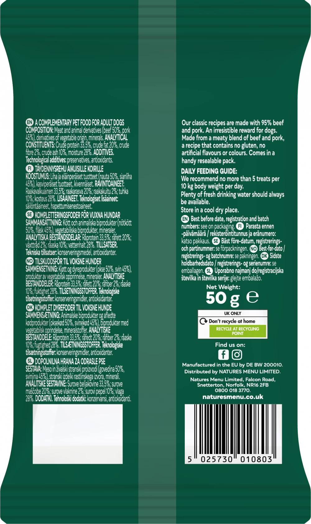 Natures Menu Treats Beef & Pork For Adult Dogs 50Gm