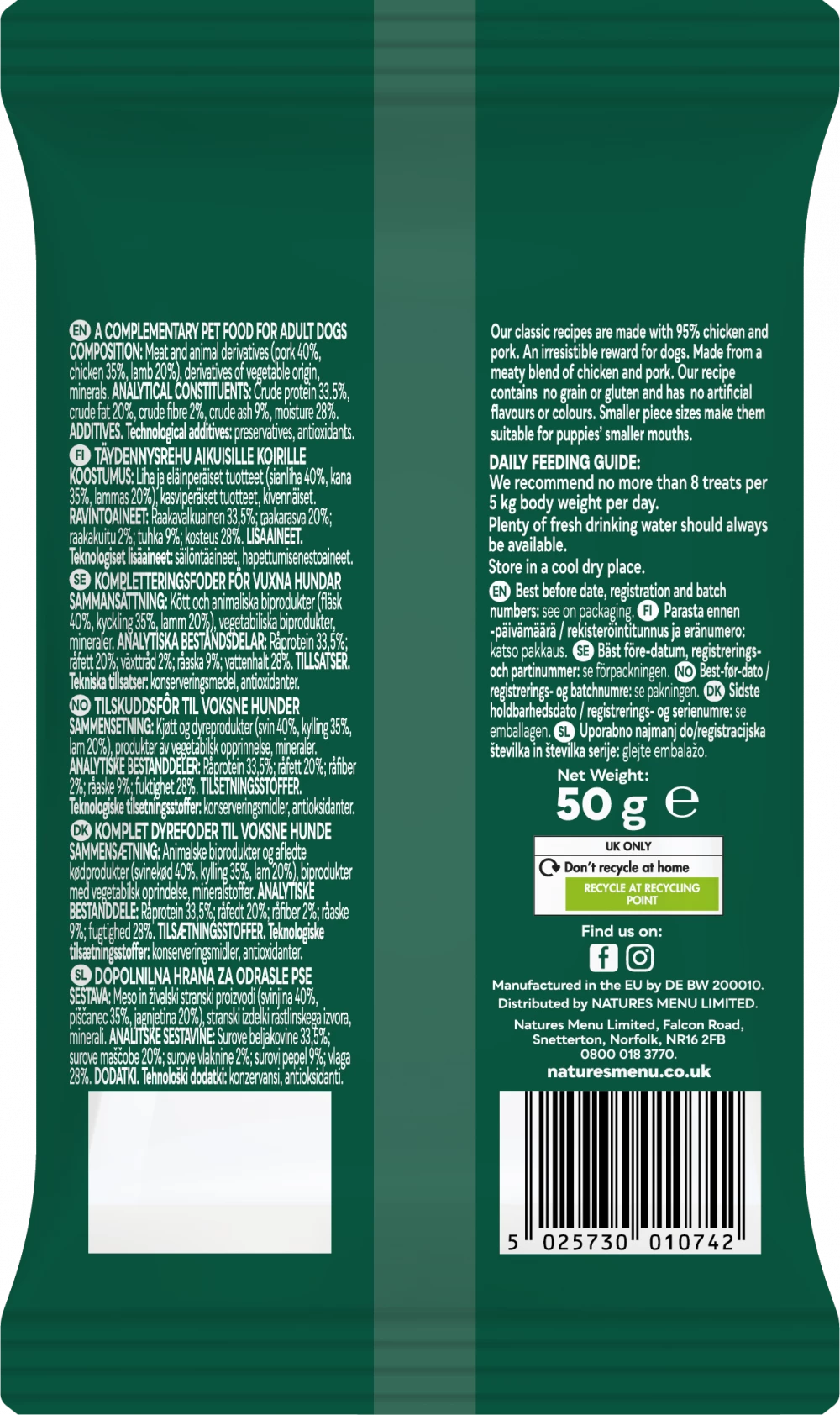 Natures Menu Treats Chicken ,Lamb & Pork For Adult Dogs 50Gm