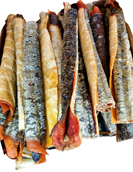 TOMMY’S Salmon Skin Roll with Salmon Meat – a crunchy, protein-packed, omega-3 powerhouse that combines the best parts of the fish in one irresistible chew. Wrapped in air-dried salmon skin and packed with nutrient-rich salmon meat, this treat is a natural source of essential fatty acids that support healthy skin, a shiny coat, brain health, and joint mobility.