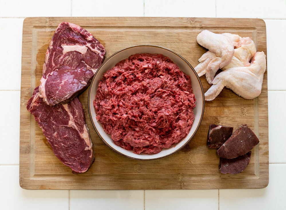 A balanced raw meal, containing 80% meat, 10% bone and 10% offal.