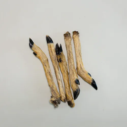 Our Roe Leg FURRY Jerky is an exceptional, 100% natural dried dog treat crafted from the legs of roe deer with fur still attached. This unique feature provides a natural source of fibre and aids in cleansing the digestive tract as your dog chews. Free from any artificial additives, it’s a wholesome and exotic choice, offering a lean protein snack that supports dental and digestive health. Perfect for dogs who crave a wild adventure in their snack time, it brings the taste of the forest to your home.