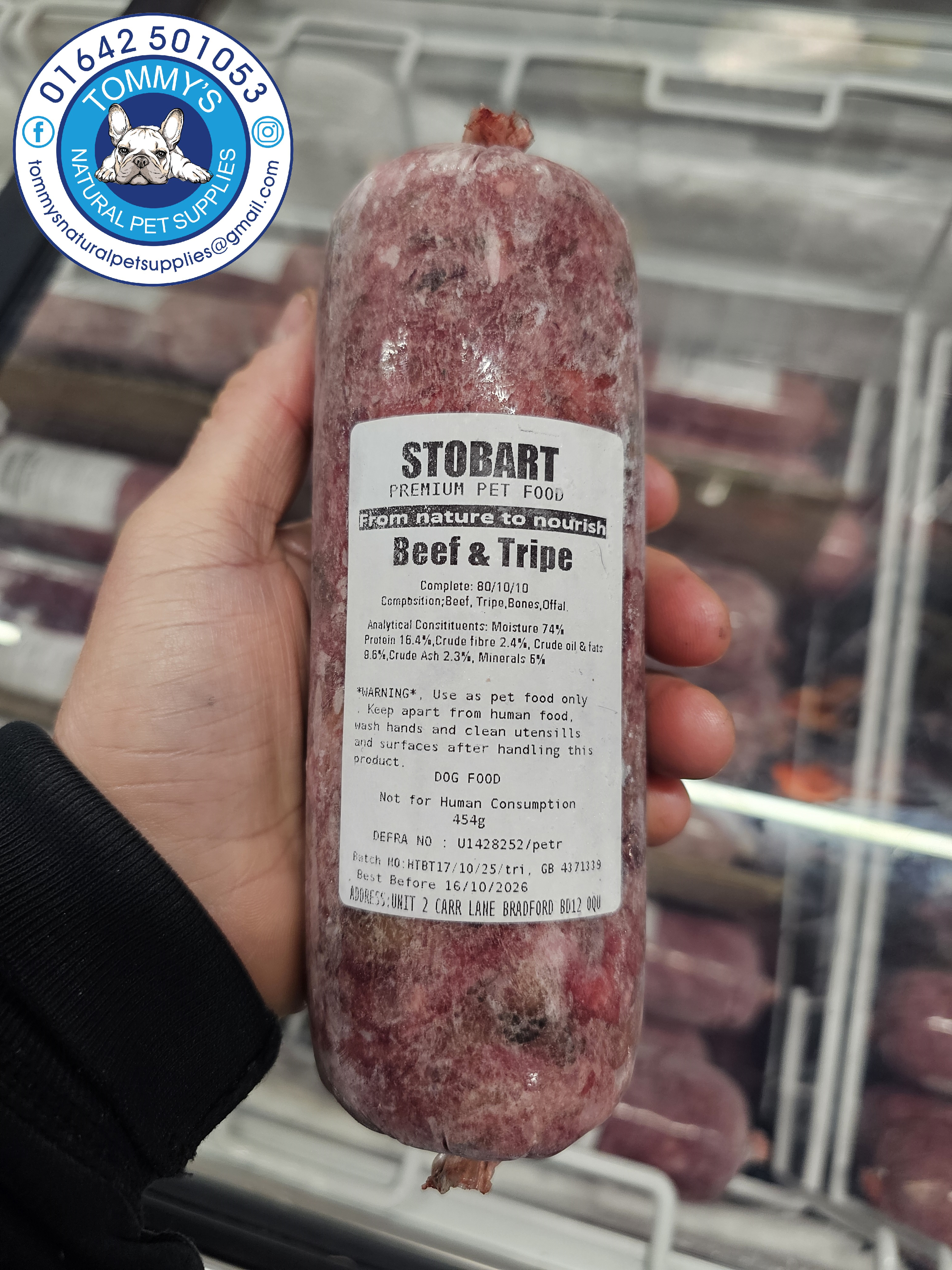 Stobart Beef & Tripe Complete is minced to 80:10:10, of which is 80% beef cuts and beef tripe, 10% bone and 10% offal.