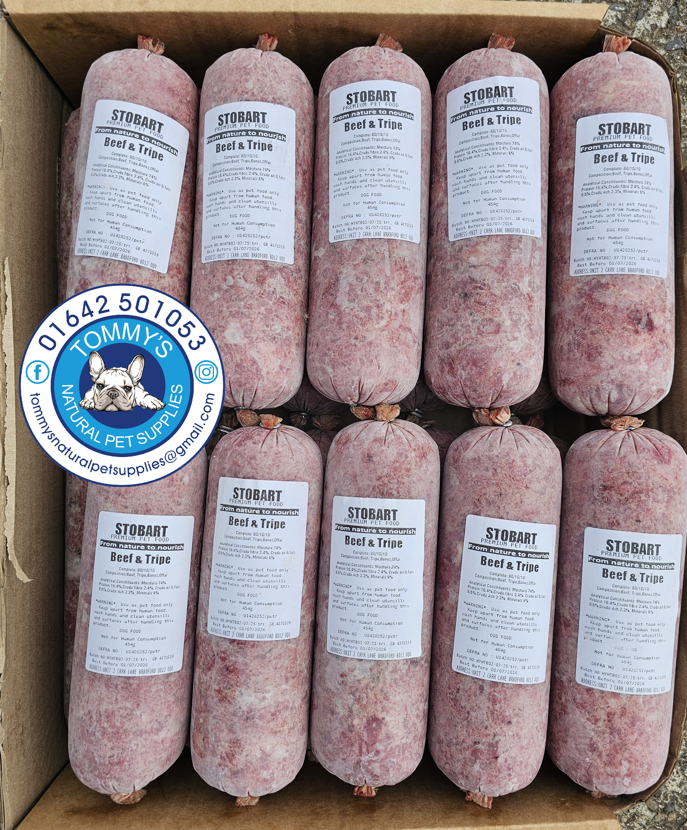 Box Deal contains 20 X 454g Stobart Beef & Tripe Complete chubs.